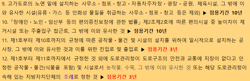 ● 도로점용허가 기간