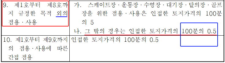법 제8조제1항 제11호의 행위 : 해당 공유수면에 인접한 토지 가격