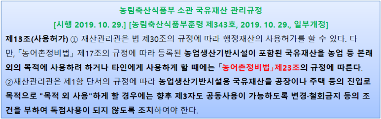 또한 농어촌정비법의 농업생산기반시설안의 공유수면도 이 법의 규정을 적용하지 않습니다.