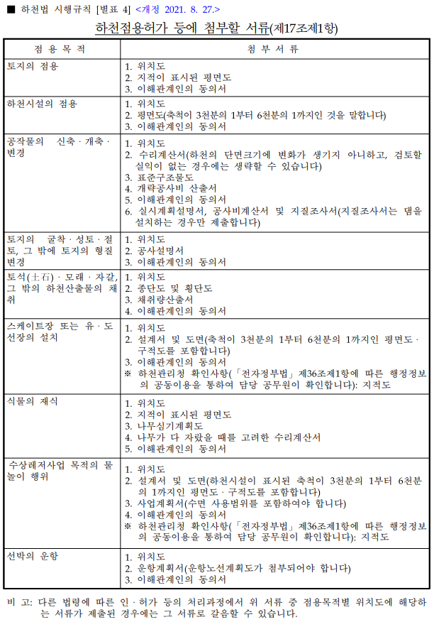 ● 하천점용허가 첨부서류