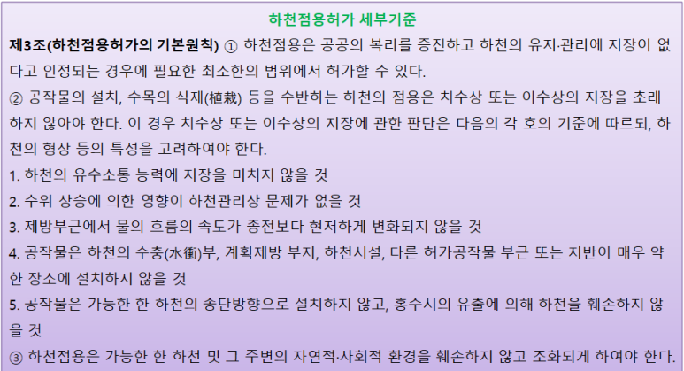 ● 하천점용허가 세부 기준