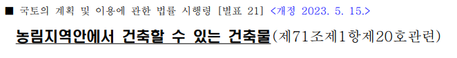▶ 농림지역에서 건축할 수 있는 건축물