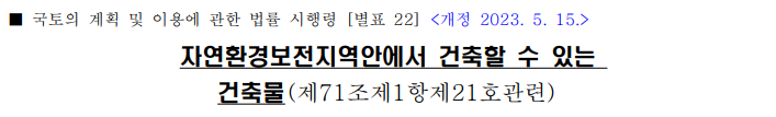 ▶ 자연환경보전지역에서 할 수 있는 행위(건축할 수 있는 건축물)