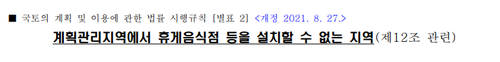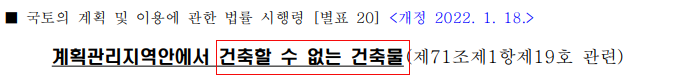 반면, 계획관리지역은 국토계획법 시행령에 열거된 헹위는 할 수 없으나 열거된 행위외에는 할 수 있죠