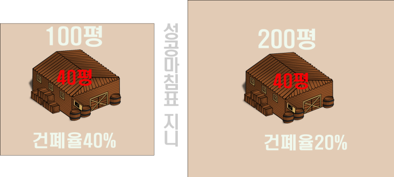 즉 건폐율의 비중이 더 크다고 할 수 있습니다.