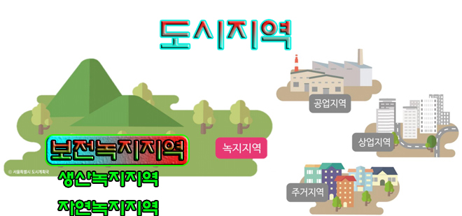 - 퐁치 및 경관이 양호하고 주민의 건전한 생활환경을 위하여 보전이 필요한 지역과 도시가 건전하고 지속가능한 발전을 위하여 적정량의 녹지확보가 필요한 지역