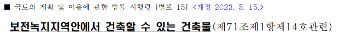 ▶ 보전녹지지역 건축 할 수 있는 행위(행위제한)
