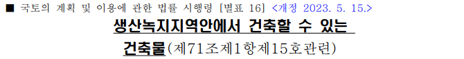▶ 생산녹지지역 개발 건축, 할 수 있는 행위(행위제한)