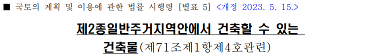 ● 제2종 일반주거지역 개발 건축 할 수 있는 건축물(행위제한)