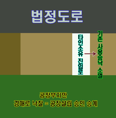 경매로 공장부지만을 저가에 낙찰받았다고 좋아 할 수있지만 공장 진입로를 확보하지 못하면 공사를 진행할 수 없죠.
