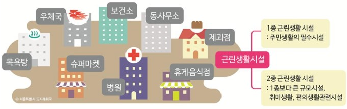 건축법에 의한 건축물의 용도 중 근린생활시설은 주택가 인근에 위치하여 일반 주거생활에 필요한 일용품과 서비스 등을 제공하는 직주 근접시설로서, 주거 생활에 필수적인 시설 및 그 규모에 따라 제1종과 제2종 근린생활시설로 나뉘며 일상주거생활에 필수불가결한 용도를 제1종, 그 보다 덜 필수적인 시설의 용도를 제2종 근린생활시설로 분류합니다. ㎡