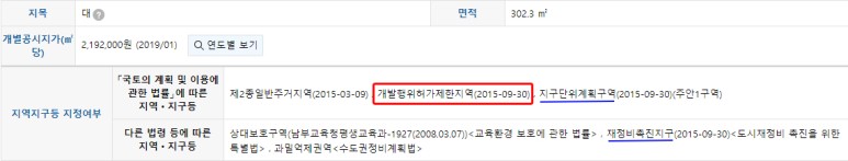 일례로 재개발 등 정비구역으로 지정되면 개발행위허가 제한지역으로 지정됩니다.