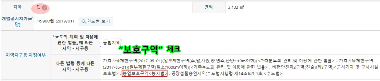 ▶ 토지이용계획확인원에 농업보호구역이 기재되어 있으면 "농업보호구역"에 체크