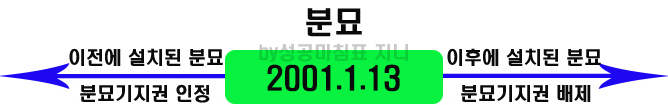 과거 판례에 의해 인정되어온 분묘기지권은 장사등에관한법률이 시행(2001.1.13)됨에 따라 동법 시행일 이후 토지소유자의 승낙없이 당해 토지에 설치한 분묘, 묘지설치자 or 연고자의 승낙없이 당해 묘지에 설치한 분묘의 연고자는 당해 토지소유자, 묘지설치자 or 연고자에 대햐여 토지 사용권 기타 분묘의 보존을 위한 권리를 주장할 수 없습니다.