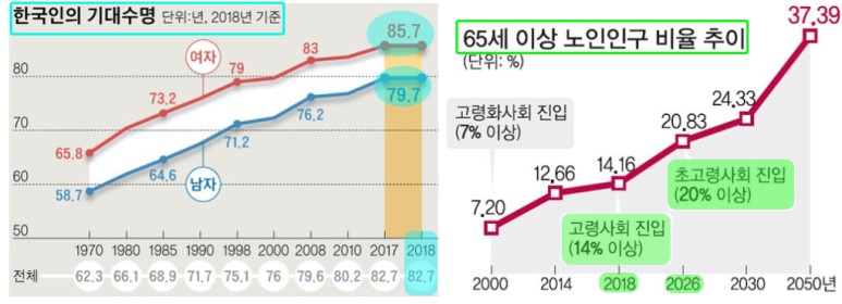 기대수명의 증가와 급격한 고령화 속도는 아파트와 달리 수요가 한정적일 수 밖에 없는 실버타운의 수요 감소를 완화해 줄 수 있는 요인입니다.