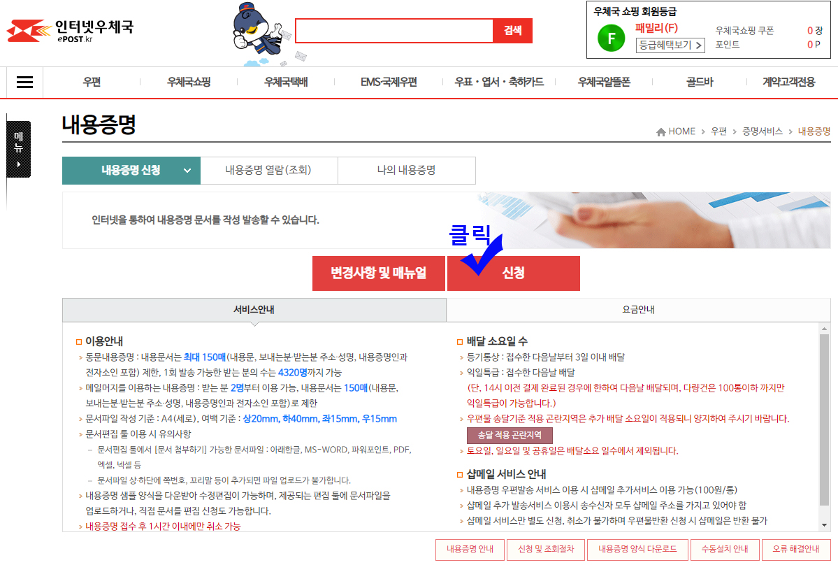 내용증명 배달증명 양식 작성방법 인터넷 우체국 보내는 방법