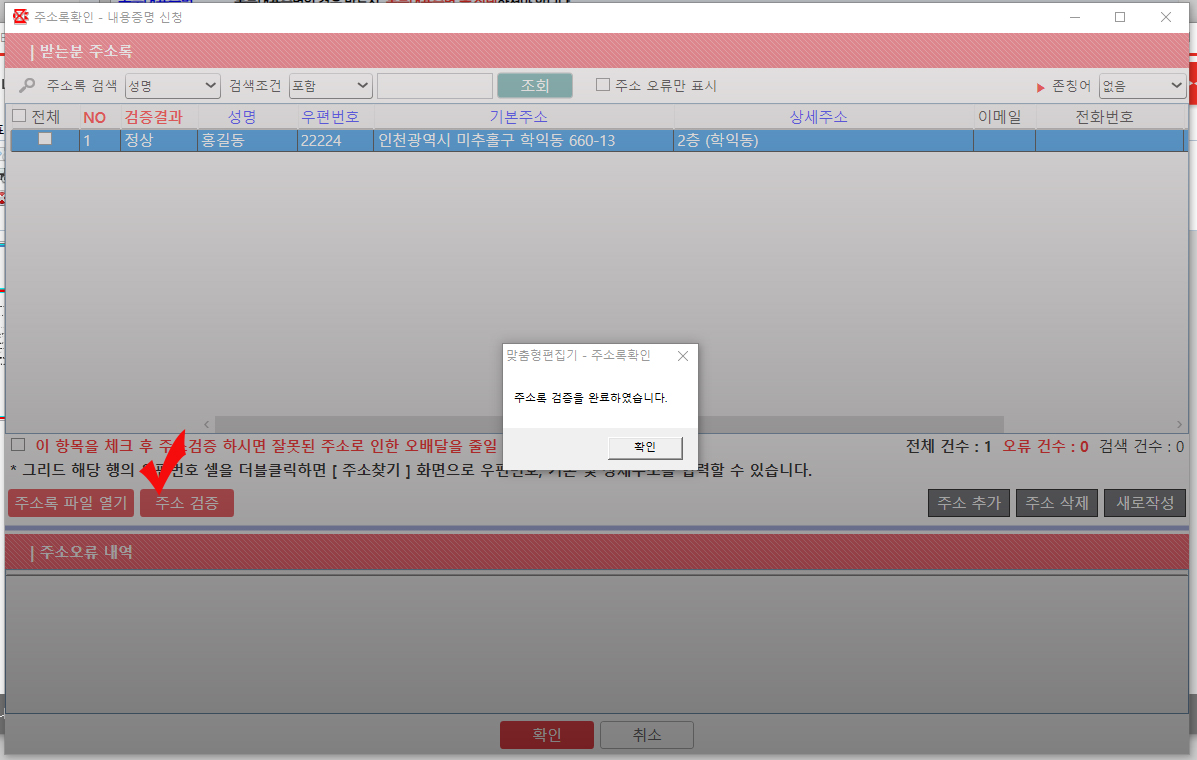 "보내는 분" "받는 분" 입력 후 "받는 분 목록에 추가"클릭