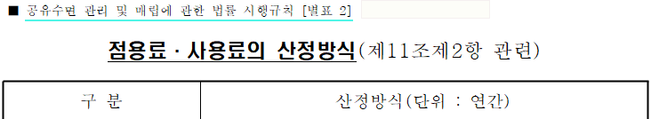 ● 구거 점용허가 목적외 사용승인 점용료 사용료(비용)