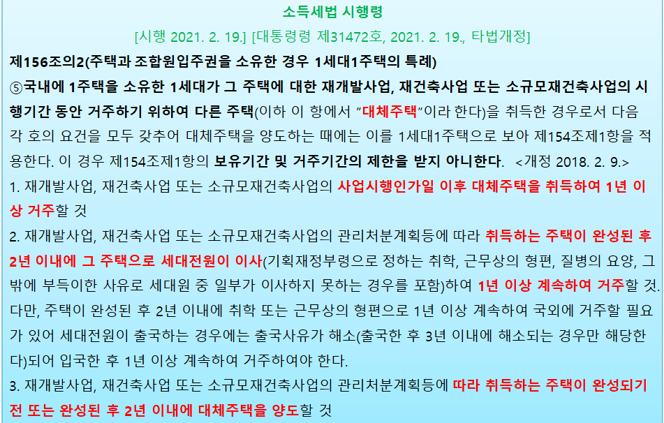- 재개발 재건축 대체주택 비과세 요건