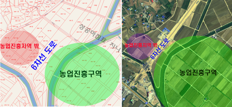 ▷ "농업진흥지역" "농업진흥지역 밖"의 구분