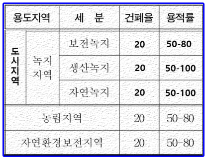 예를들어 녹지지역에 농업진흥지역이 지정되면 녹지지역의 건폐율.용적률을 적용받게 됩니다.
