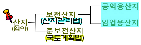 반면 보전산지가 세분화된 공익용.임업용산지는 국토계획법뿐만 아니라 "산지관리법"에 의한 행위제한도 받기에 개발.건축행위에 많은 제약이 있죠