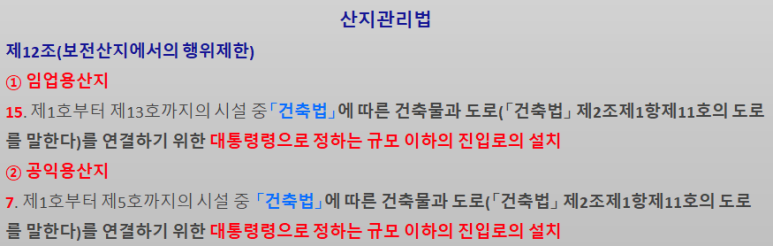 당연 보전산지는 도로문제에 대해 준보전산지보다 더 엄격한 기준을 요구하겠죠