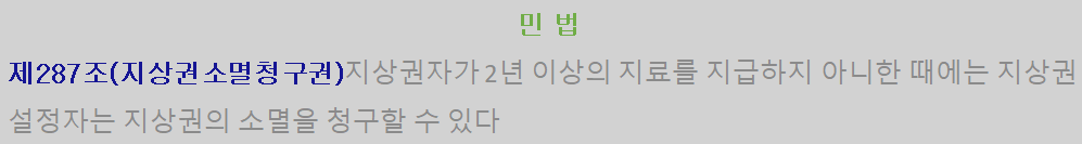 지료 미지급시에는 지상권 소멸청구에 관한 민법 제287조 지상권 소멸청구권 규정을 유추 적용하면 되겠죠